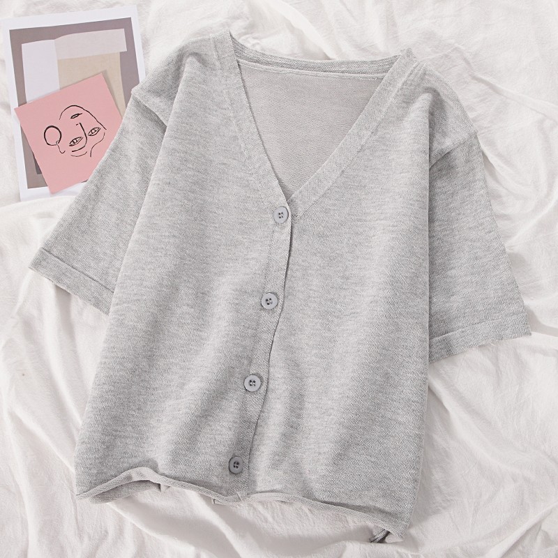 半小時前氣質v領薄款打底針織衫,2020夏季新款女裝短款開衫上衣 - 【買一送一】任選2件,僅需NT$998