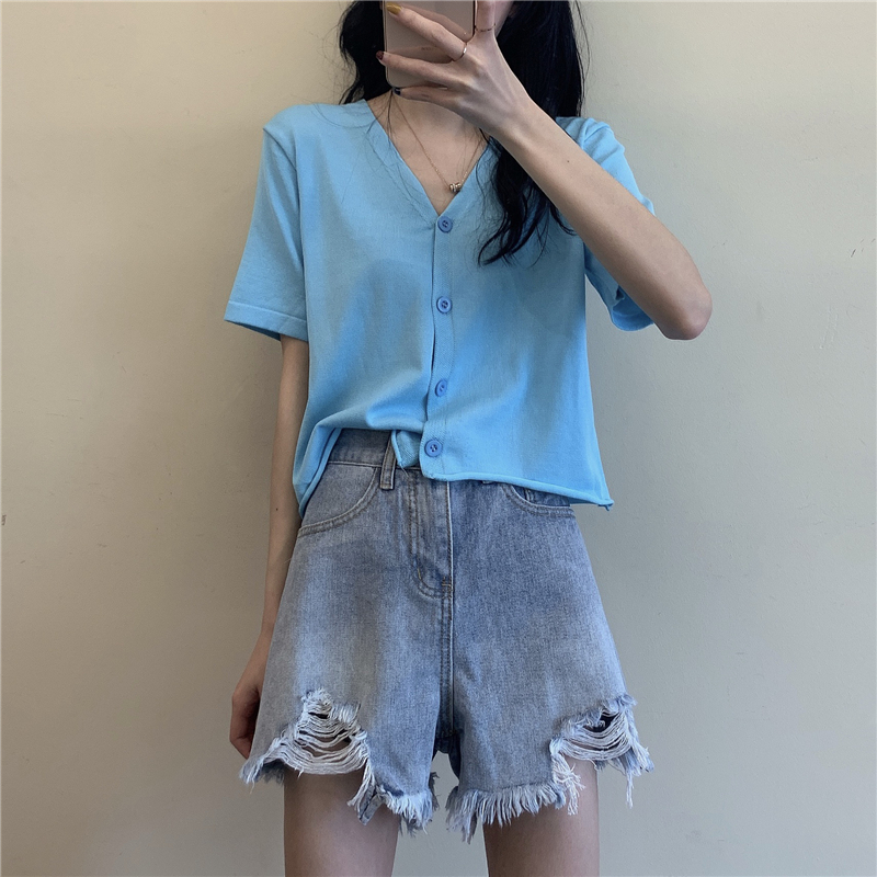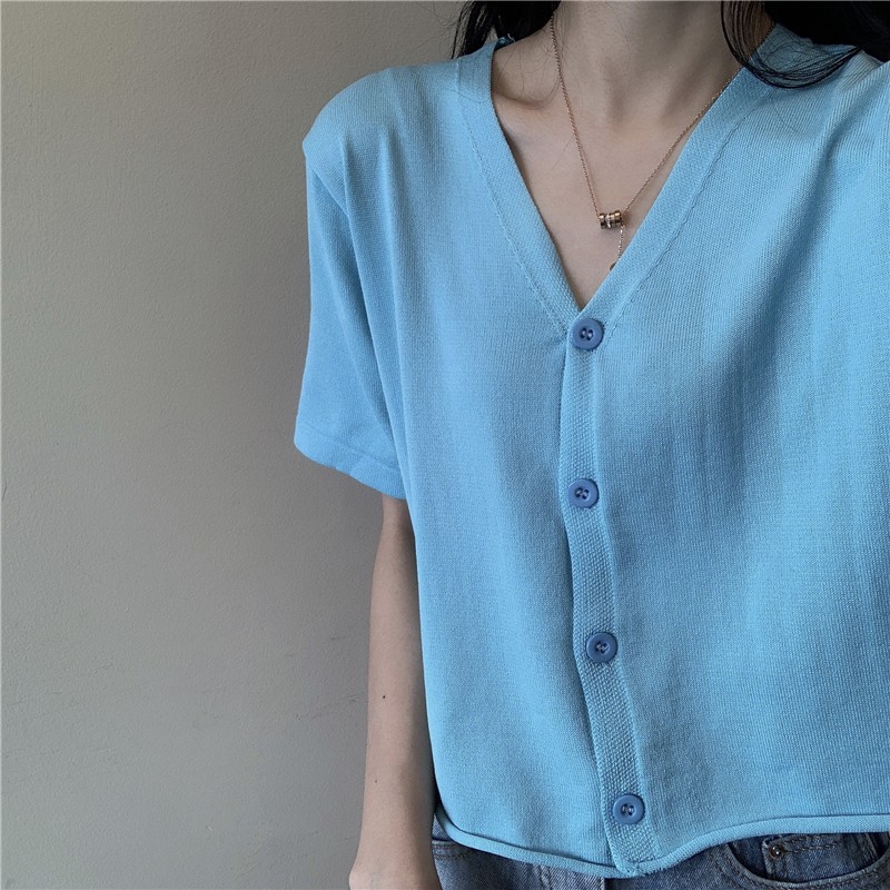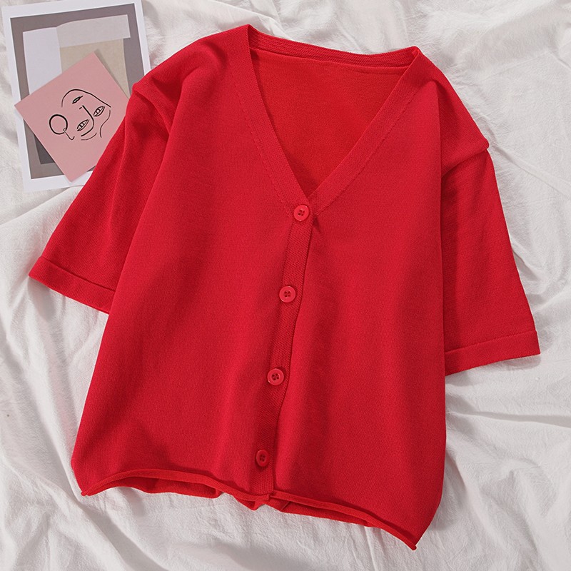 5分鐘前氣質v領薄款打底針織衫,2020夏季新款女裝短款開衫上衣 - 【買一送二】任選3件,僅需NT$1098