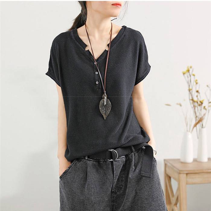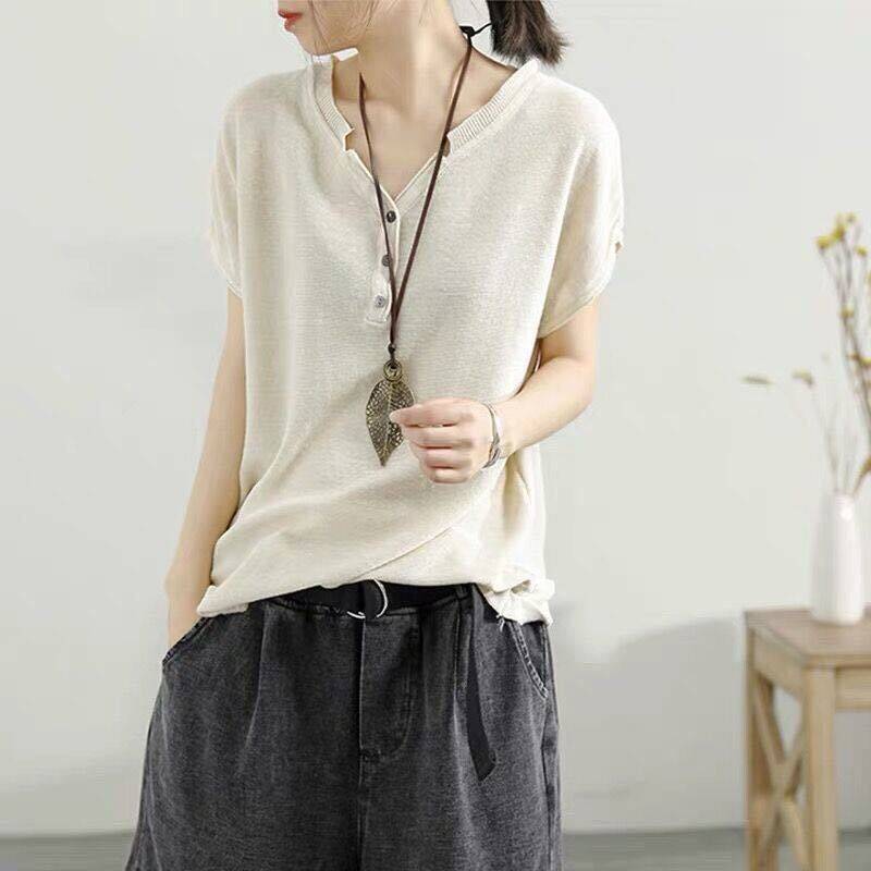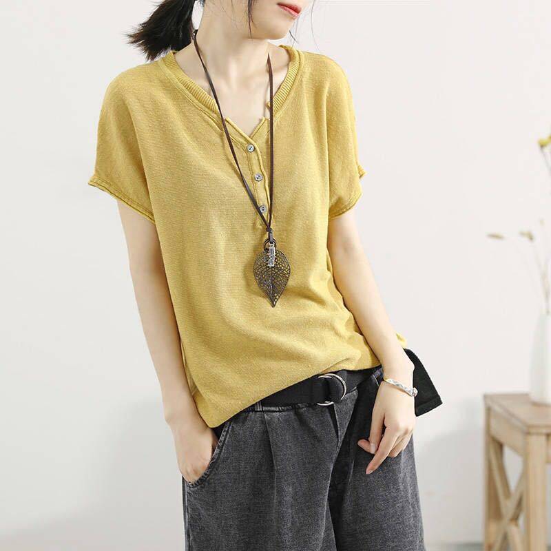 【夏季熱銷款】冰絲薄款V領短袖【超薄透氣】【舒適百搭】【促銷活動還在進行中哦!】